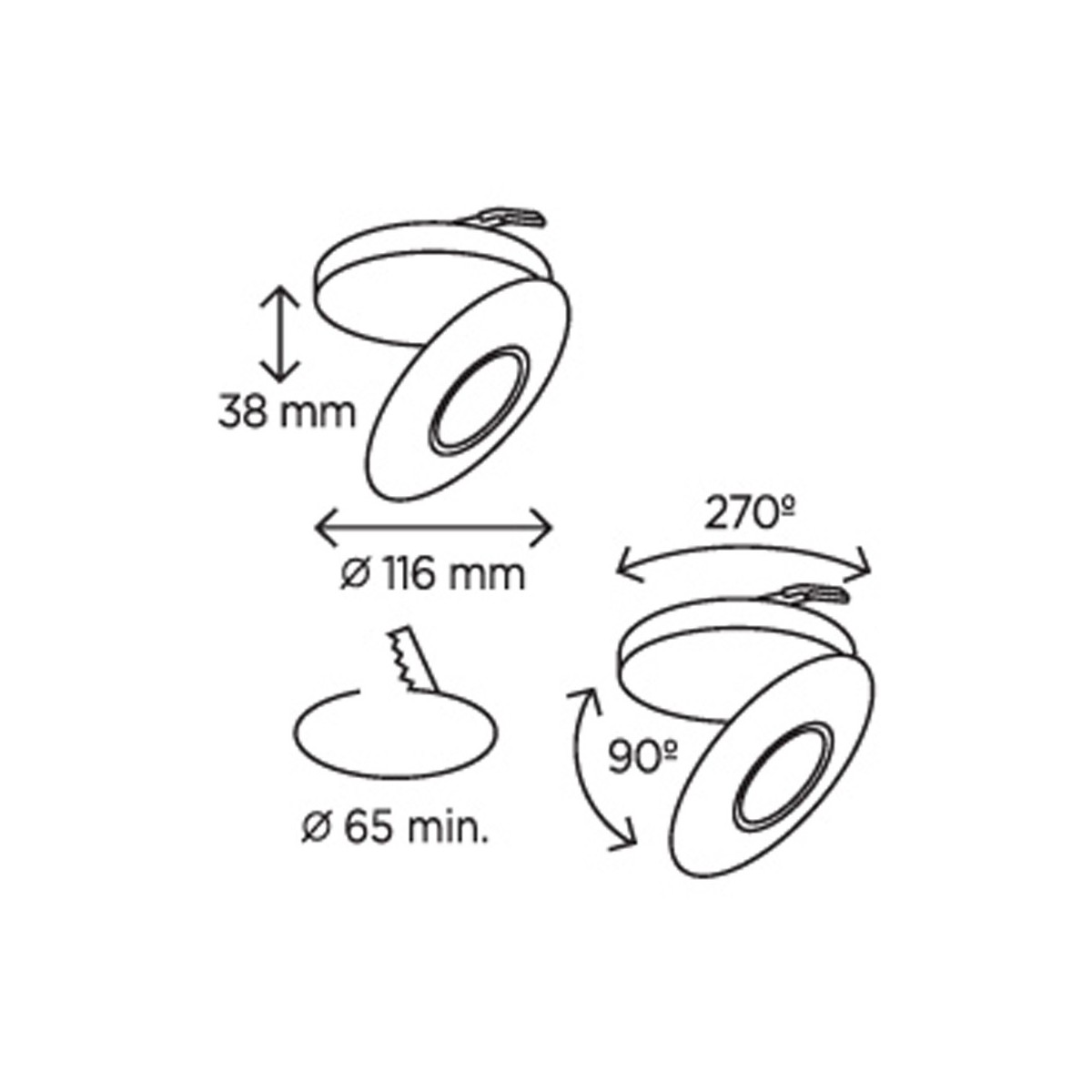 Very versatile recessed LED light with a white finish, 5 watts, 360 lumens and 4000K neutral light. Its modern shape has been designed to direct the light where needed but in a different and innovative way. Also, it allows two types of installation, as a recessed light or as a surface mounted light.