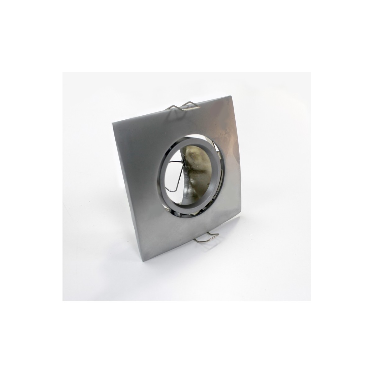 Square aluminium flush mount, 45º swivel. Silver finish. Dimensions 100x100mm. Round hole 90mm diameter.