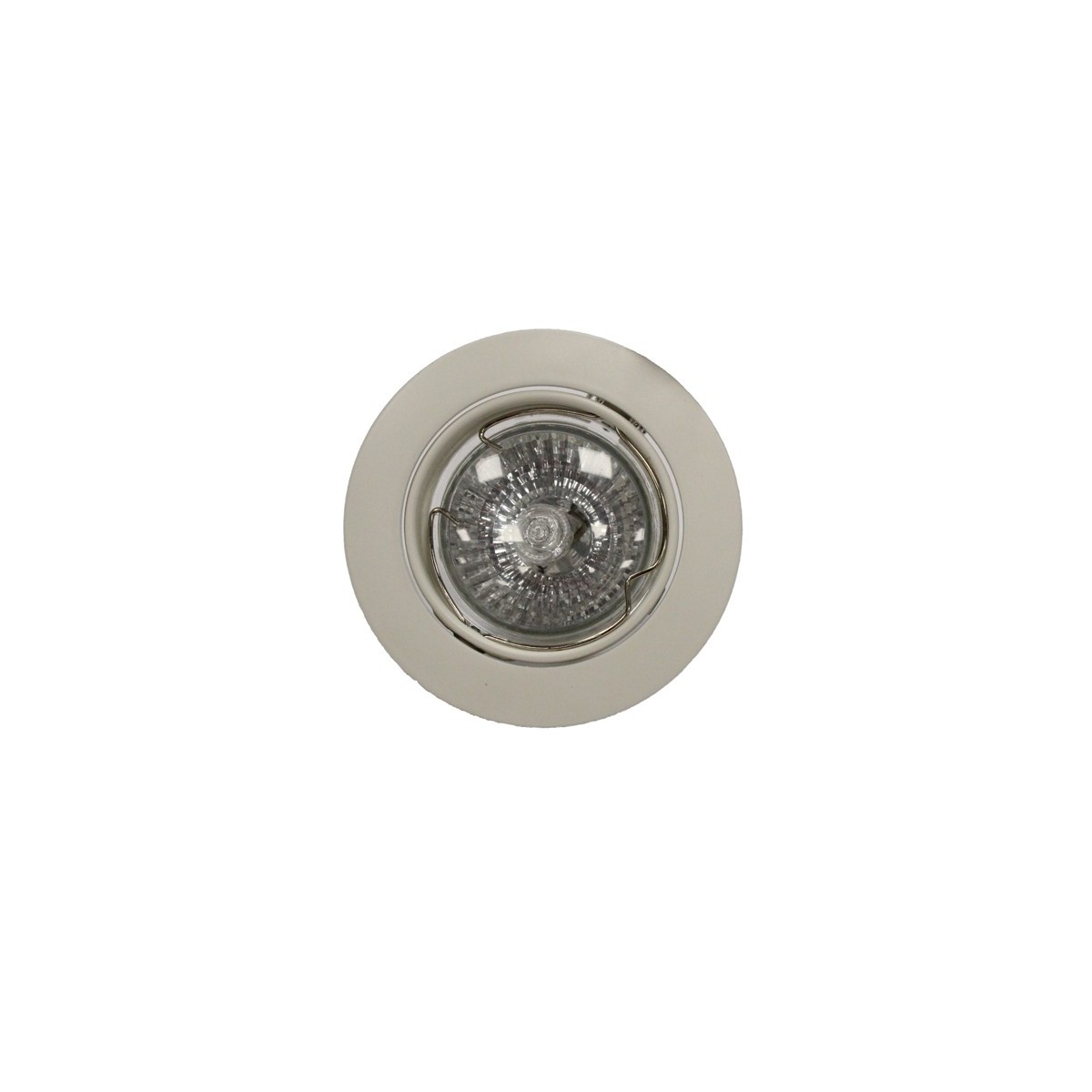 Recessed round tilting halogen 85mm diameter. It has a 30° tilting angle. The thread measures Ø75mm. With aluminium structure and white finish. Protection class II. Includes one halogen bulb GU10 50W, 230V. Connects directly to the mains.