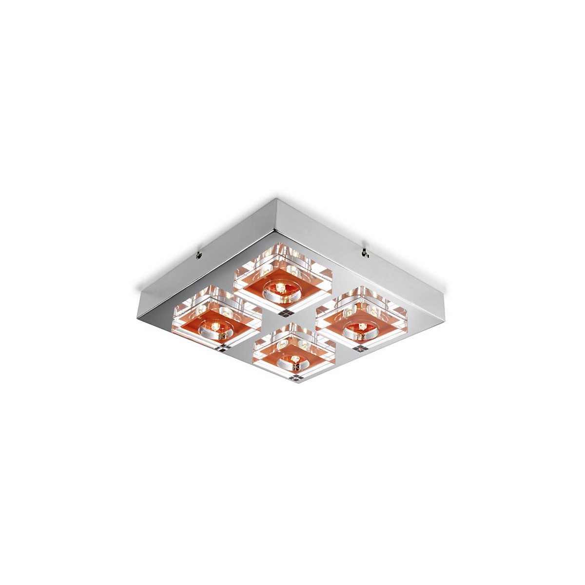 LUNNE ceiling lamp with 4 spotlights. Metal structure in chrome finish with orange K9 optical glass. Includes 12V G9 lamp holder.