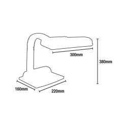 Youthful design with flexible head, perfect for directing the light where you want. Ideal for desks and study areas. Includes low consumption bulb 27W, Cold light. ON/OFF switch and 3 buttons to select the intensity of the light (3 different intensities). Plastic structure finished in blue-silver.