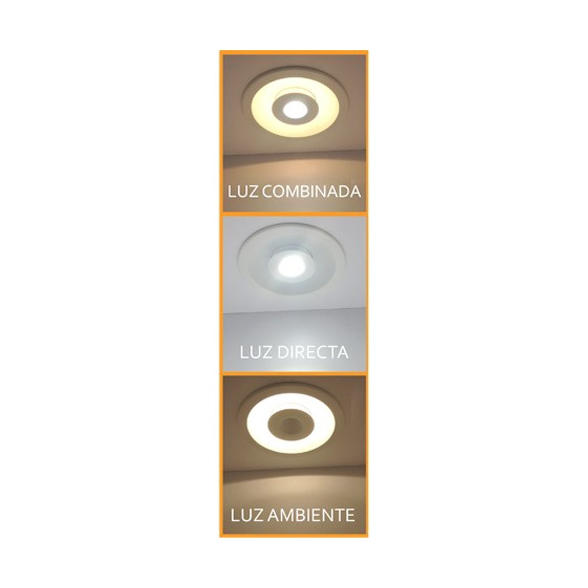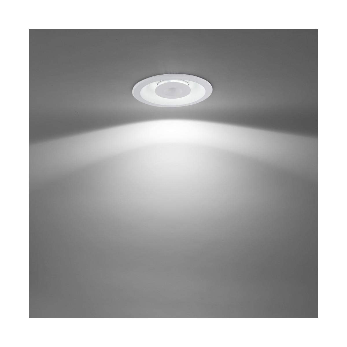 Modern LED Downlight perfect to place in any room thanks to its discreet but original design. This model also has the advantage of offering 3 types of lighting in one product: direct light from the LED chip, ambient light from the hidden LED strip, and a combined lighting result of mixing both. 7 + 7W LEDs that provide 1260 lumens.