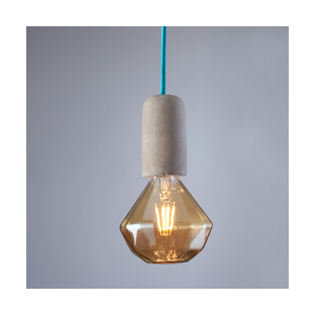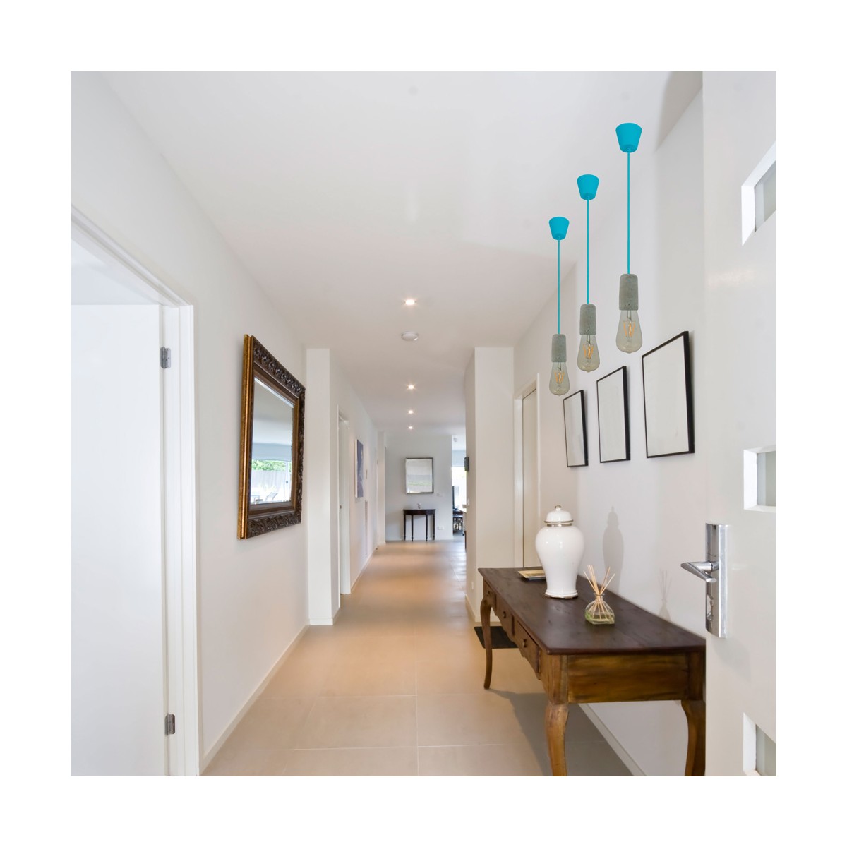 Pendant lamp holder with a different look thanks to the ultralight concrete part and blue rubber cable. This type of lamp is a simple way to light any room adding something attractive to the decoration. It can be adjusted to different height levels. *Bulb not included.