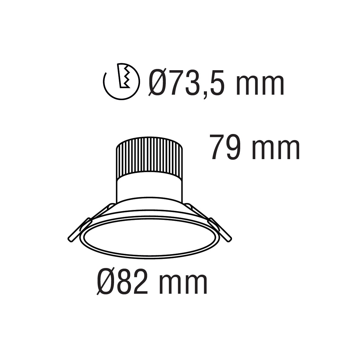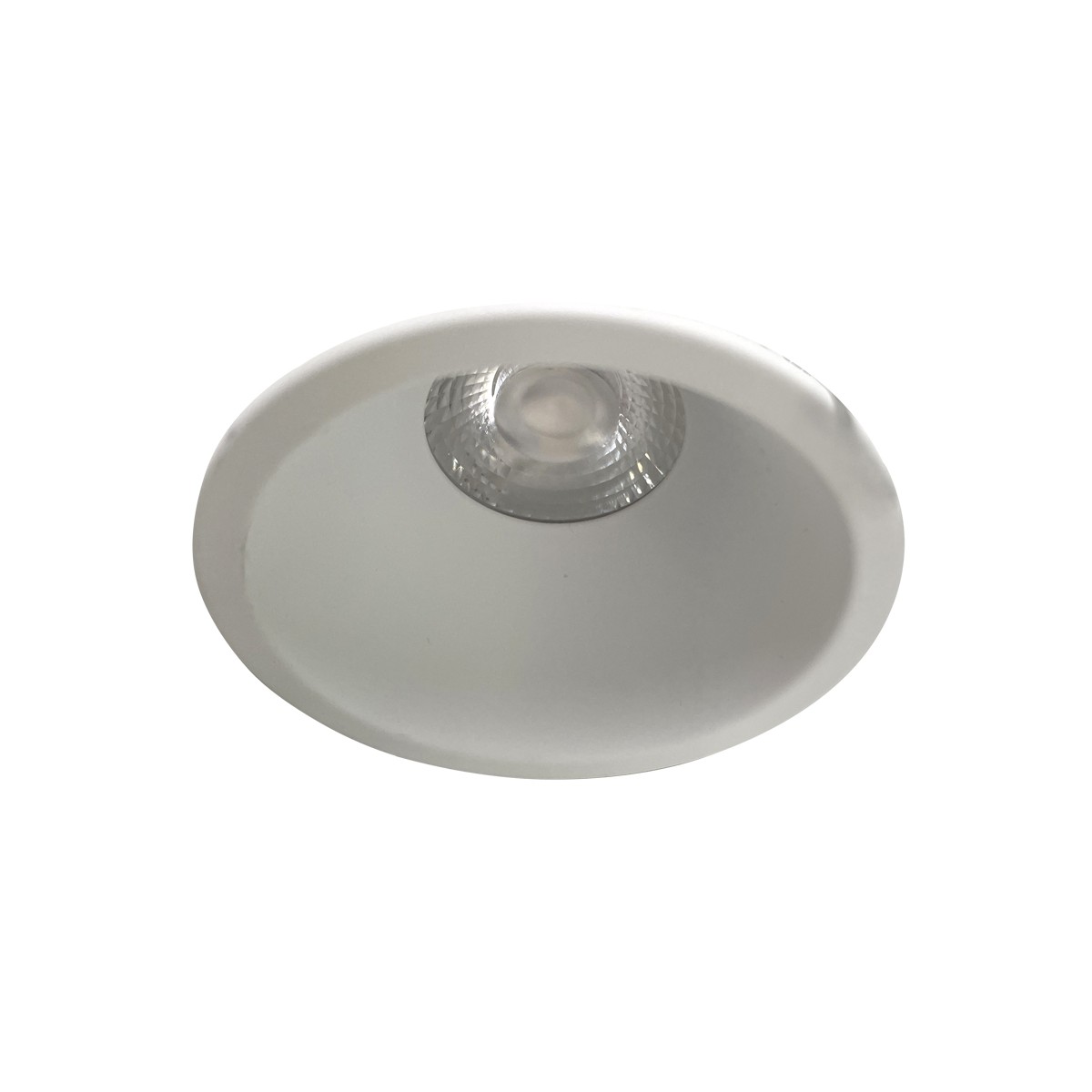 LED recessed ceiling light for bathrooms. Fixed round recessed downlight with integrated LED lighting in warm white tone. 12W LED, 1200 lumens and 3000K colour temperature. Designed for correct operation in kitchens, bathrooms and rooms exposed to humidity. Fixed LED light point with 36º opening angle.