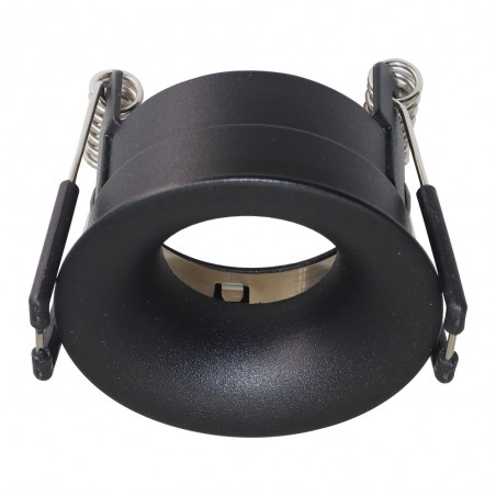 Round black recessed ceiling light. Fixed recessed downlight for functional indoor lighting. Circular design made of black textured aluminium. Recessed installation in the ceiling in a 4.80 -centimetre gap. Ideal for contract lighting projects in homes, shops, hotels and businesses. Includes lamp holder for GU10 PAR11 bulbs.