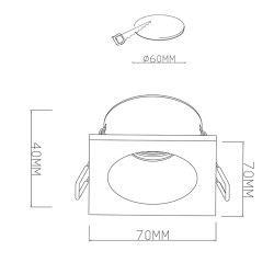 Square white recessed ceiling light. Fixed recessed light for functional indoor lighting. Square design made of white textured aluminium. Recessed installation in the ceiling in a 6-centimetre gap. Ideal for contract lighting projects in homes, shops, hotels and businesses. Includes lamp holder for GU10 bulb.