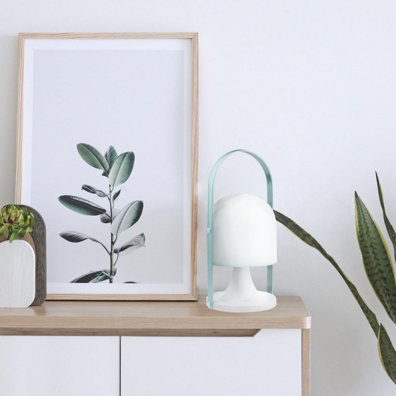 Rechargeable table lamp for bedrooms. This table lamp offers a practical design with a rechargeable battery and a handle for easy carrying. This way, you can place the lamp on any table or piece of furniture in your home as lighting. It features 3W LED technology and warm light, providing cosy illumination next to a bed or sofa.