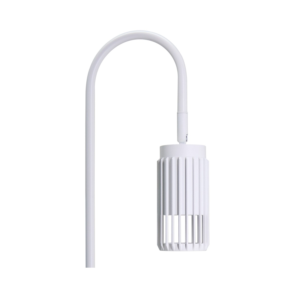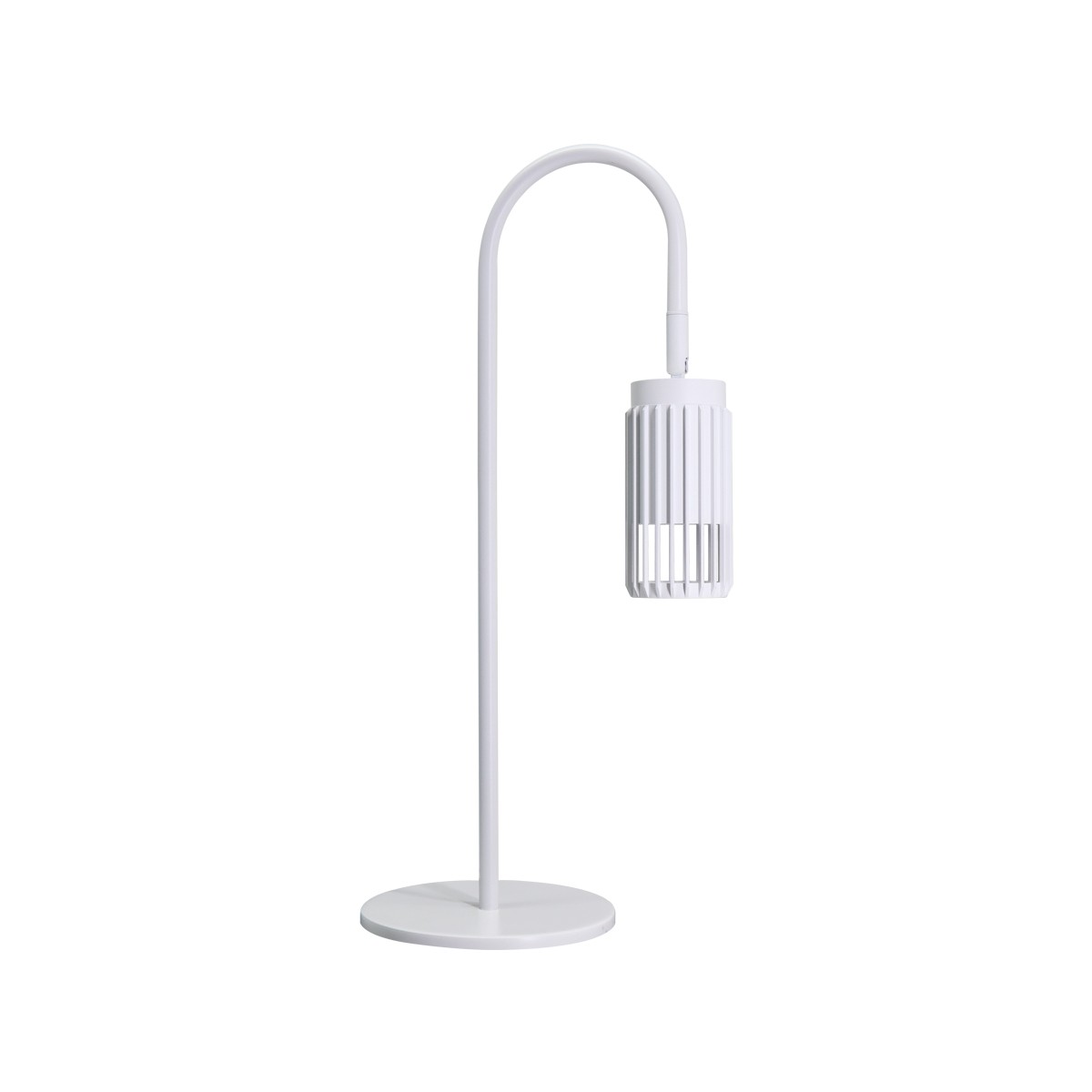 Sahara modern table lamp. Made of sandblasted white aluminium. Minimalist but innovative design with cylindrical spotlight in relief and half open grid. Ideal to place on the bedside table in the bedroom or on a side table next to the sofa. Sahara decorative lighting collection.