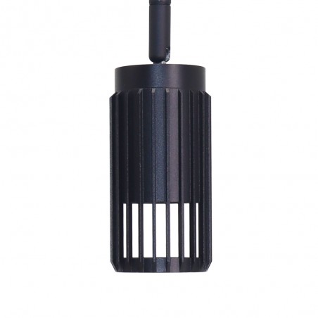Sahara modern table lamp. Made of sandblasted black finish aluminium. Minimalist but innovative design with cylindrical bulb in relief and half open grid. Ideal to place on the bedside table in the bedroom or on a side table next to the sofa. Sahara decorative lighting collection.