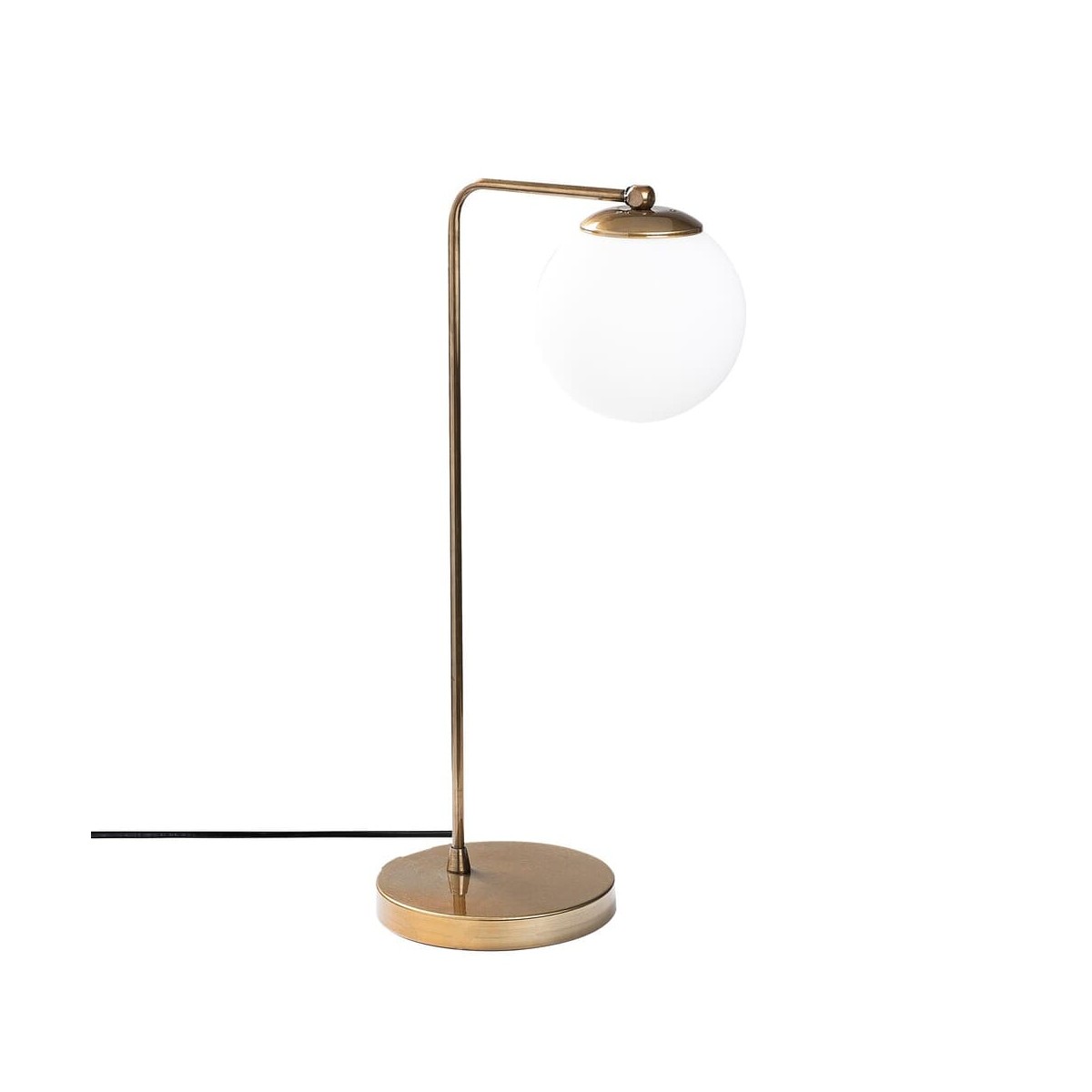 Decorative table lamp in a simple style. Fixed black lacquered metal body with a 12 cm round base and a frosted white glass shade. Total height 55 cm. For E27 bulb, not included.