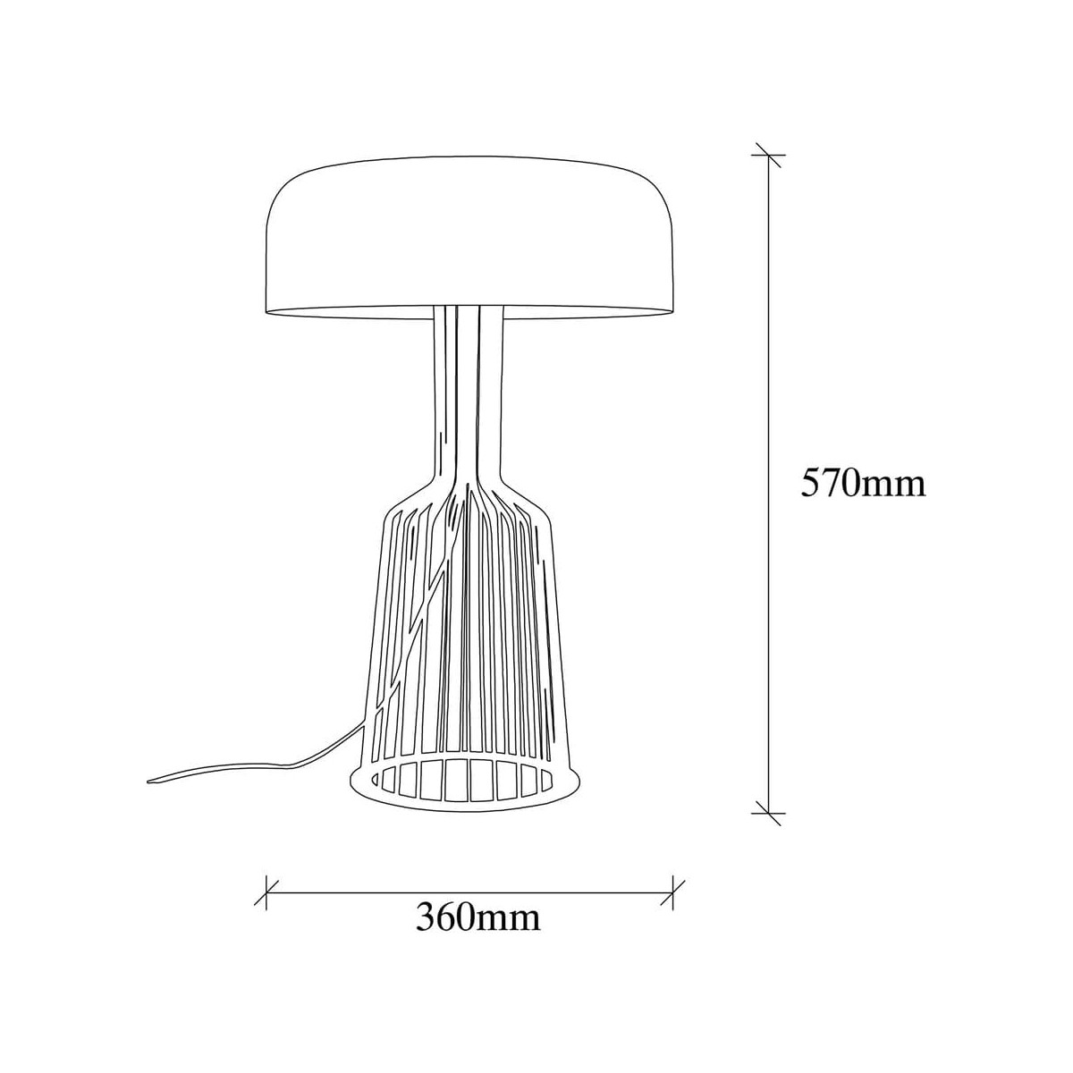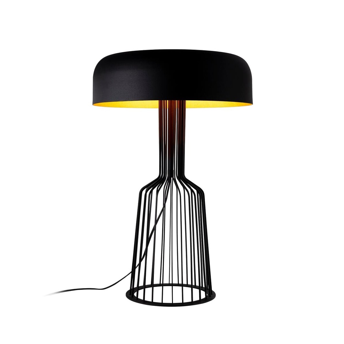 Decorative table lamp in industrial style. Made of matt black lacquered metal, with the inside of the lampshade in gold. It works with an E27 bulb, not included. The lamp measures a totoal of 57 cm high, and has a 2 metre cord.