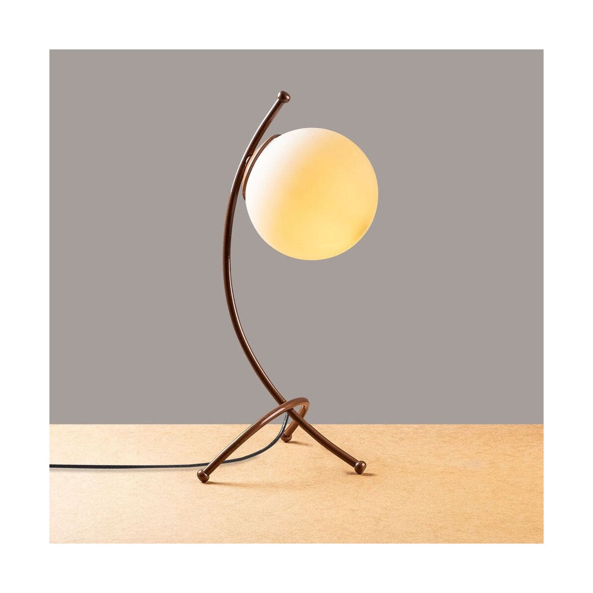 Decorative table lamp in nordic style made of black metal structure with matt white glass shade. It works with one E27 bulb, not included.