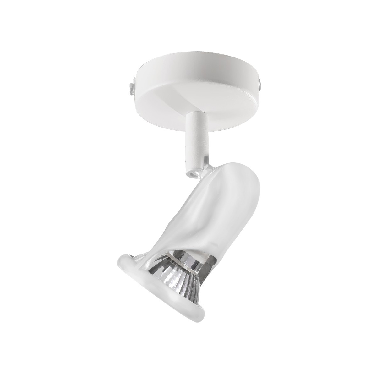 Spotlight with round base in white finish. GU10 bulbs not included. Compatible with LED bulbs.