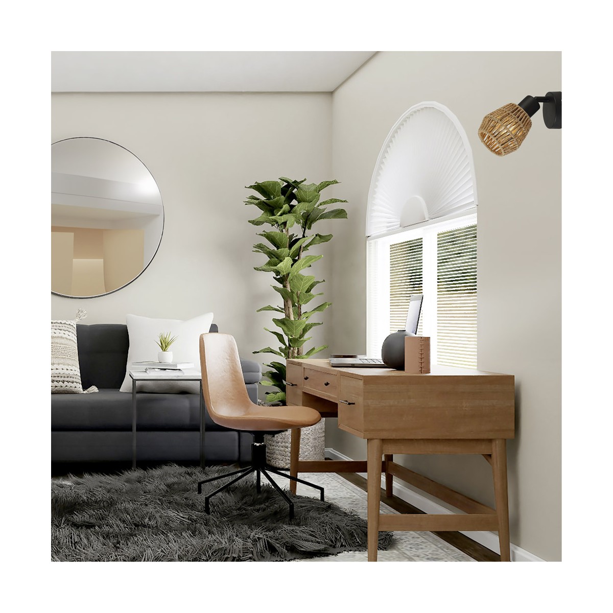 Boho wall lamp Krabi. Adjustable wall lamp in a natural style with a rattan lampshade. Designed to provide a point of light in a hallway, corridor or room. Adjustable up and down.
