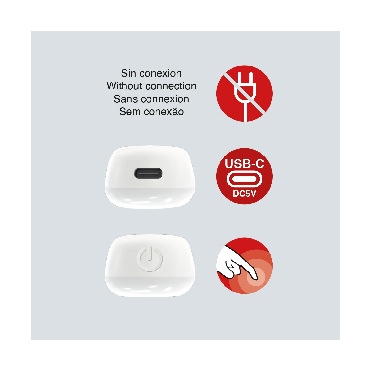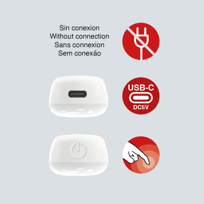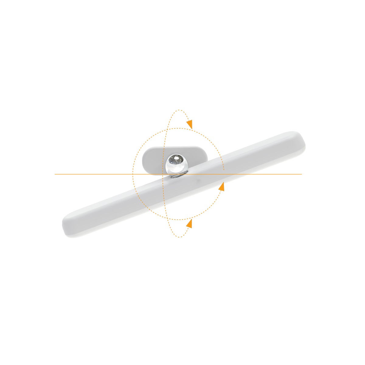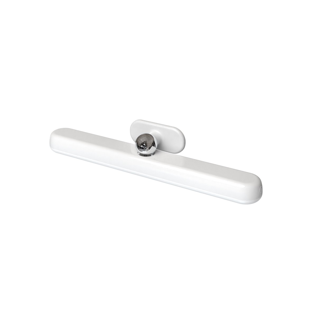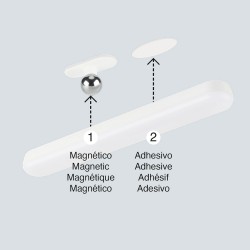 Wall light with rechargeable battery. Practical and versatile wall light which is attached to its wall bracket by means of a magnet. In this way, you can turn it in all directions by pivoting it on the magnetised spherical piece. The light is easily switched on by pressing on one side of the wall light. Easy installation and use without connecting to the light thanks to its rechargeable battery (USB-C cable)