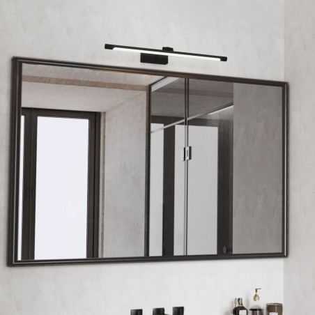 Wall light to be placed over the bathroom mirror. LED wall light with neutral white light for use as everyday lighting in front of the mirror. It has integrated LED lighting with neutral white colour temperature (4000K). Made of black aluminium with polycarbonate diffusers. IP44.