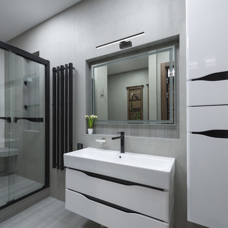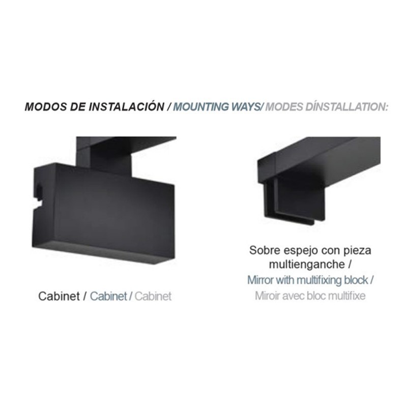 LED wall lamp for bathroom mirrors Roth. Wall light with LED lighting in a neutral white shade designed for installation as lighting above the bathroom mirror. It is made of black aluminium, with polycarbonate diffuser, and has IP44 protection against possible water splashes. LED 12W, 840 lumens and 4000K.