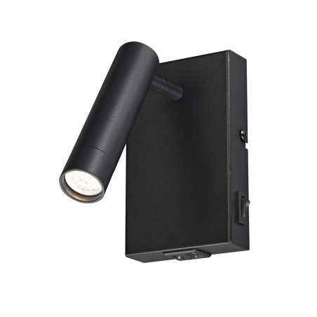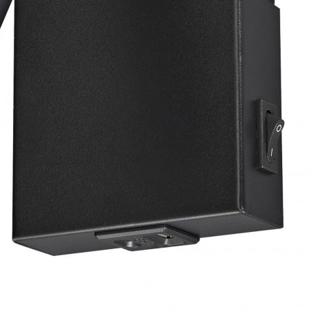 Slim wall light with adjustable reader. Practical wall lamp to install on the wall next to the headboard or on the bedside table. It has an adjustable tubular spotlight for use as auxiliary or reading light. The wall lamp has an ON/OFF switch on one side and two USB ports (A and C).