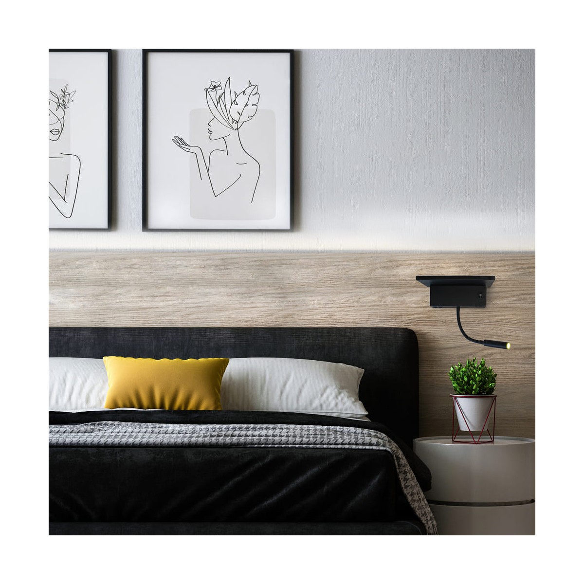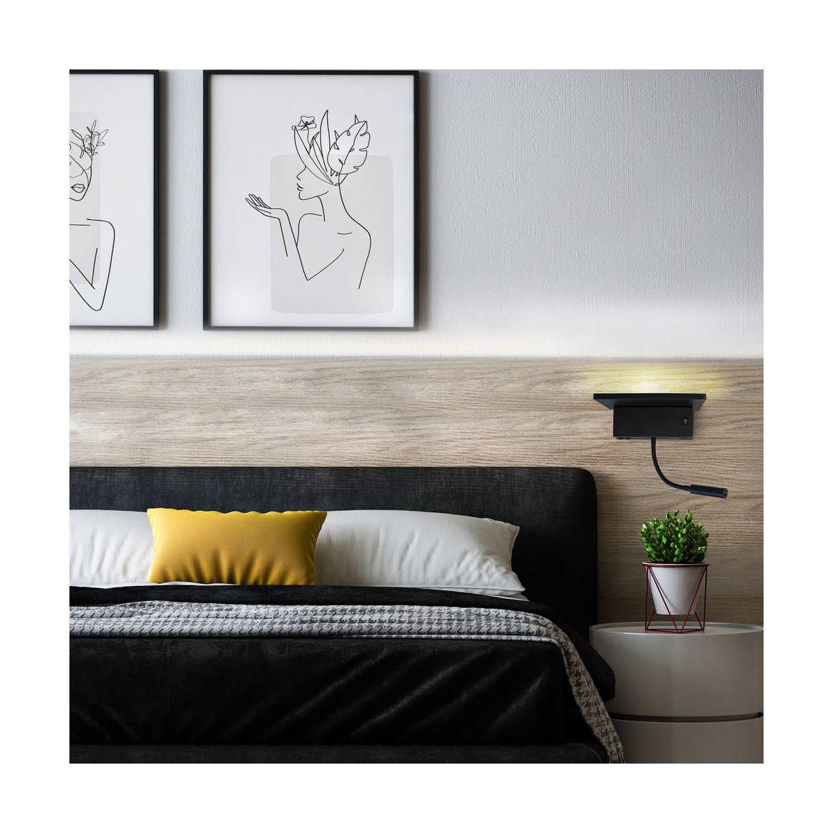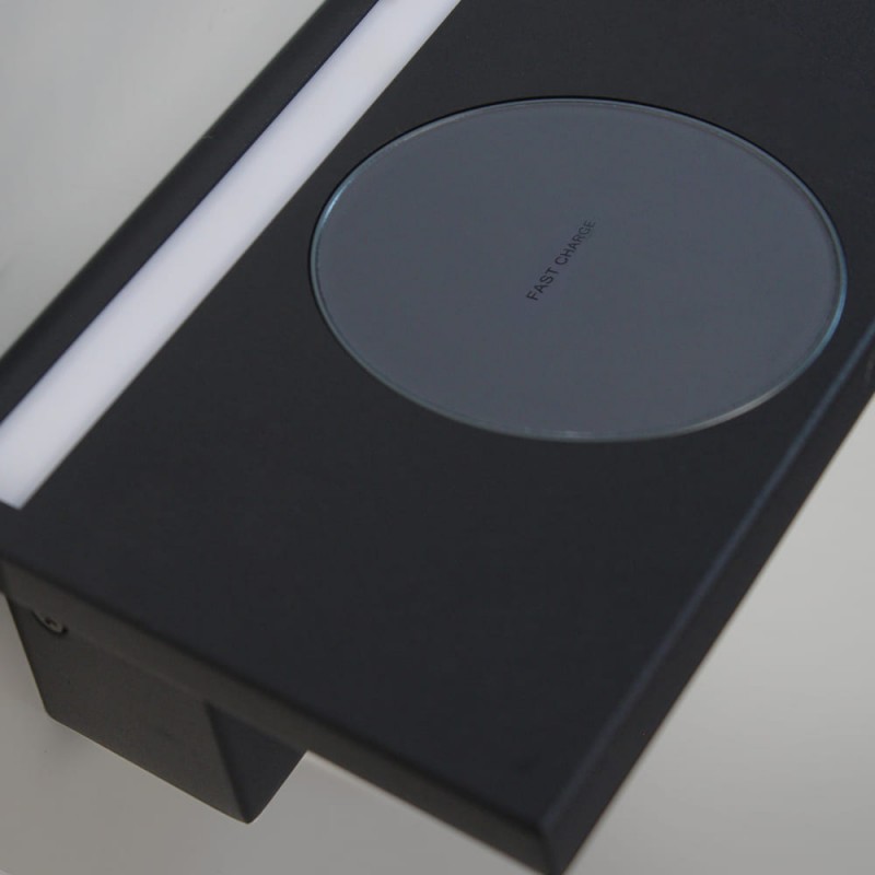 Rob II 22cm LED Wall Light 5W+3W 530Lm 3000K USB and Wireless Charge Black